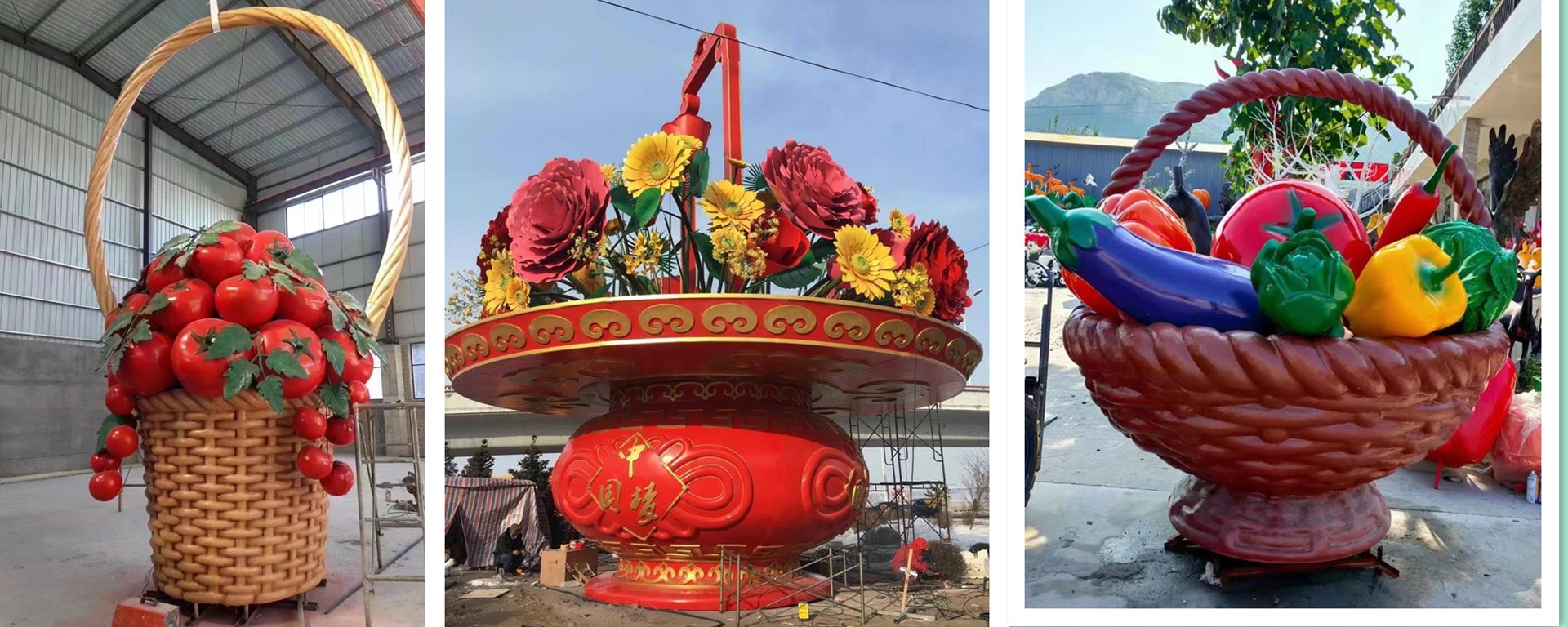 金鼎雕塑加工景觀花籃雕塑,水果雕塑,蔬菜雕塑,果蔬花籃雕塑,景觀大花籃雕塑,北京天安門(mén)廣場(chǎng)花籃雕塑案例,仿真花籃雕塑,節(jié)日慶典花籃雕塑。 花籃-花籃廠家-哪里制作花籃-玻璃鋼花籃-玻璃鋼仿真花籃、仿真大花籃、城市景觀花籃、城市路口擺件花籃、大花籃、金鼎雕塑花籃廠家、金鼎雕塑公司安裝北京玻璃鋼材質(zhì)仿真大花籃位于國(guó)旗和人民英雄紀(jì)念碑中間的空地上,大花籃以玫瑰、牡丹、百合和壽桃、葡萄、蘋(píng)果等喜慶的花果籃為主景,花籃為鋼架結(jié)構(gòu),籃身為玻璃鋼材質(zhì),金鼎雕塑玻璃鋼仿真大花籃制造商;籃盤(pán)直徑12米,花壇底部直徑45米。在籃體南側(cè),面向天安門(mén)方向題寫(xiě)著“祝福祖國(guó)”和“1949-2020”兩行金色大字;在籃體北側(cè),面向人民英雄紀(jì)念碑方向,題寫(xiě)的是 “萬(wàn)眾一心”和“1949-2020”兩行金色大字。籃內(nèi)共使用了125枝大型仿真花,籃底部花壇則使用我國(guó)自育花園小菊“絢秋星光”與一品紅組成10顆紅心的圖案。潤(rùn)景雕塑花籃種植制造一體企業(yè)。