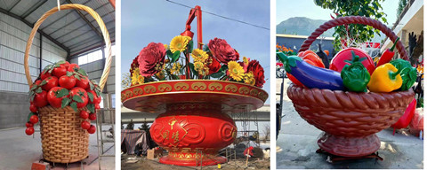 花籃雕塑定制 玻璃鋼仿真花籃景觀